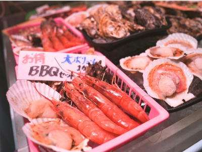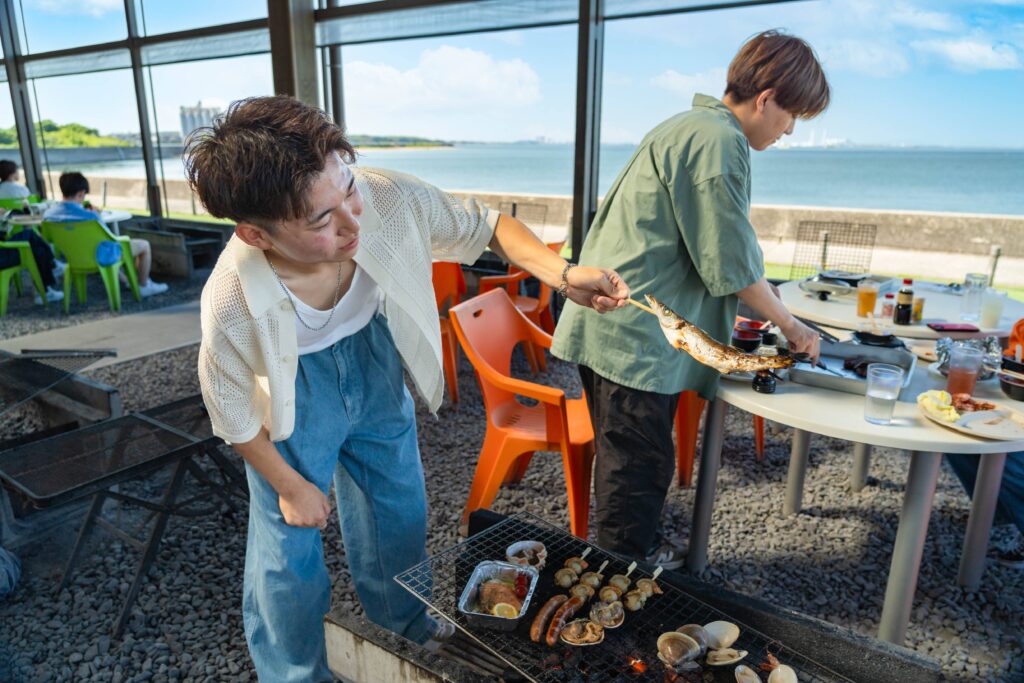 - 併設の「鮮魚市場」で買った新鮮な魚介類を、そのままBBQに持ち込める!