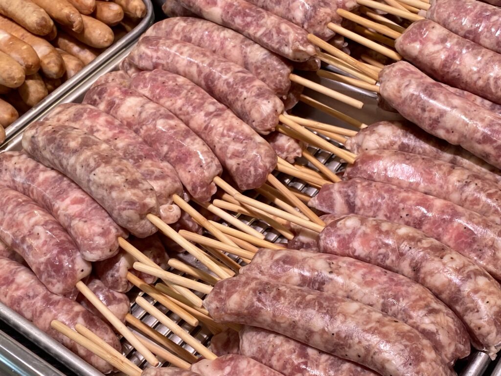 魚太郎では、知多牛 誉以外にもおいしい肉を取り揃えています。例えば知多豚。こちらも平山ショップから仕入れる上質なもので、弱火でじっくりと火を通すことで柔らかくふっくらと焼き上がります。とにかく肉自体がおいしいので、しょうゆや塩こしょうでシンプルに味わうのがおすすめ。また三河ハムのポークフランクもお子様には大人気!口に入れた瞬間肉汁がジュワーッと飛び出します。おいしいですが、熱々なので食べる時はご注意くださいね!