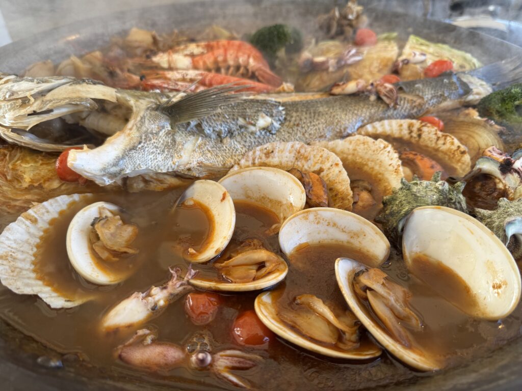 さらに赤えび・ホタテに白ハマグリ・さざえといった貝類をふんだんに投入!この魚貝類たちが特製ブイヤベーススープをさらに美味くするのです。