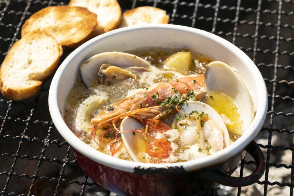 魚太郎浜焼きBBQラグーナ蒲郡店で提供するのはダッチオーブンを使ったパンです。ダッチオーブンはキャンプやBBQを日常的に楽しむ人ならおなじみですよね。魚太郎では、ダッチオーブンを使ったメニューを試行錯誤しながら開発。あれやこれやといろいろな食材で試した結果、焼き立てパンがみなさま失敗することなく楽しめるということで、メニューに加えることになったのです。パンは家族で食べられるサイズと、ミニサイズがあります。