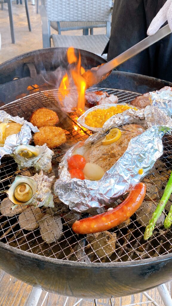 とくると、今年の冬は平日お昼なんもないじゃんとお思いかもしれませんが、ただでさえ冬は美味いものが目白押し!ぶりや黒鯛、牡蠣なんかも…想像しただけでゾクッとします。そこに、平日限定でお昼はアルコール飲み放題やっちゃいます。しかも時間は長く180分!(¥3,300税込)。クラフトビールや熱燗までご用意!そして席から離れたところに薪をくべましてですね、そこでマシュマロ&キャラメル炙って食べ放題にしちゃいます。(BBQご利用のお客様はなんと無料!)意外とキャラメルとかいいですよ、口の中で温かくてとろっと柔らかくて。冷める前の一瞬を味わう、そんな大人の楽しみ方をご用意しております。