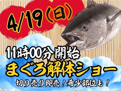 19日(日曜日)11時~まぐろ解体ショー開催します!! 目の前で卸したまぐろはすぐに冊にして販売致します! もちろんイートインコーナーでも卸したてまぐろ丼の販売もありますよ~ カマの部分や貴重な中落がお値打ちに買えるじゃ … ラグーナ蒲郡店4月19日まぐろ解体ショー開催