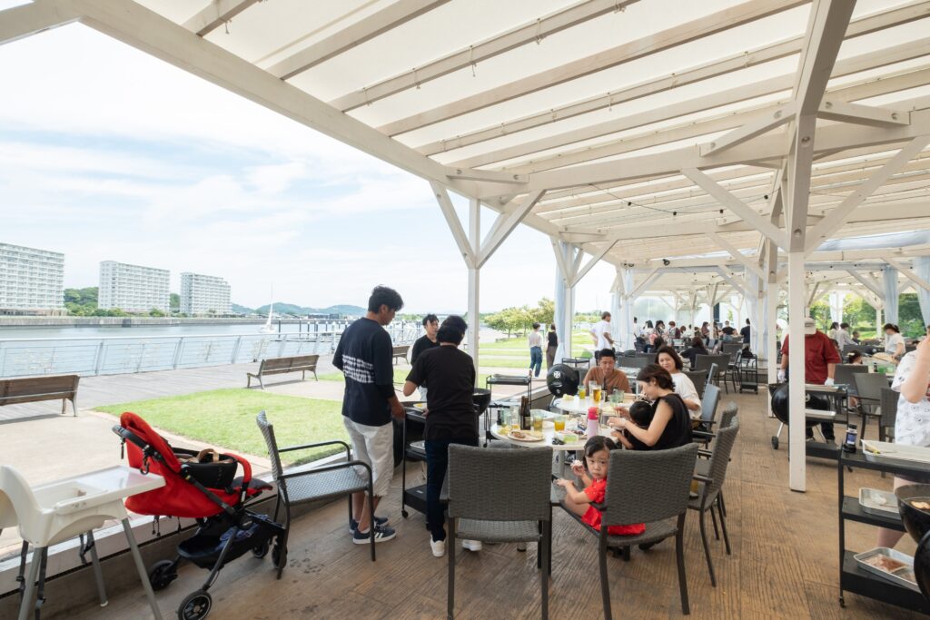 - 夕方の涼しい風を感じながら、ゆったりと海鮮を堪能できる。