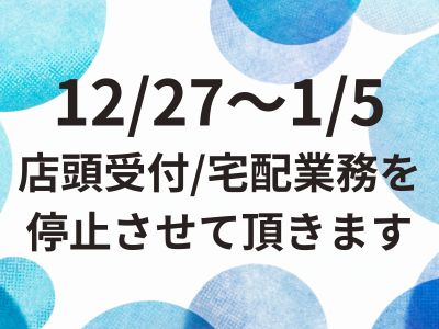 12/27~1/5 店頭受付/宅配業務を停止させて頂きます