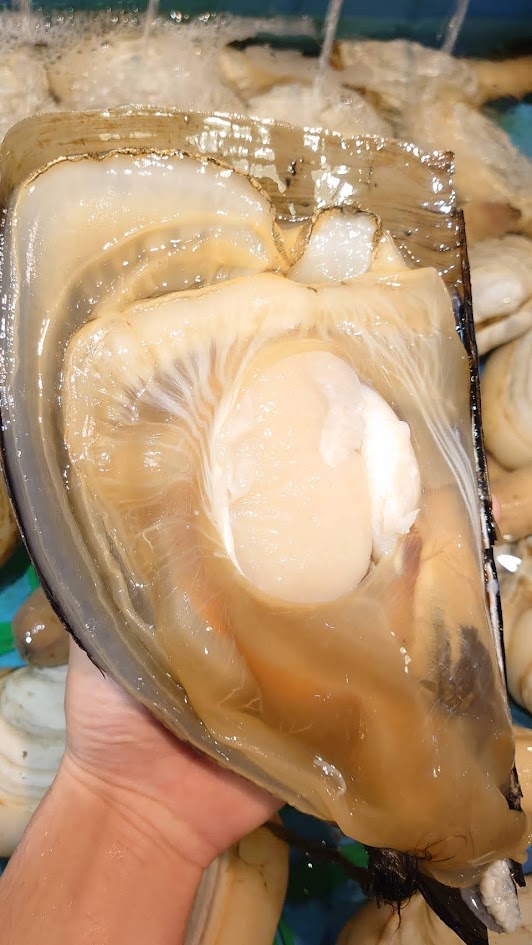 お刺身やお鮨になっている平貝を見かけることは多くあると思いますが、なかなか丸っと一つを見る機会はないかもしれません。実は平貝は貝柱の王様と呼ばれるほど巨大なんです!特に春のこの季節は旬を迎え、一年間で一番大きく育ちます。貝柱だけでも100gを超えるものも!
