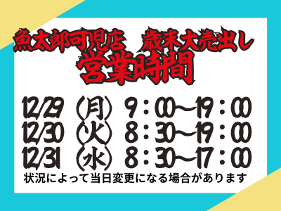 歳末営業時間 可児店 歳末大売出し 営業時間