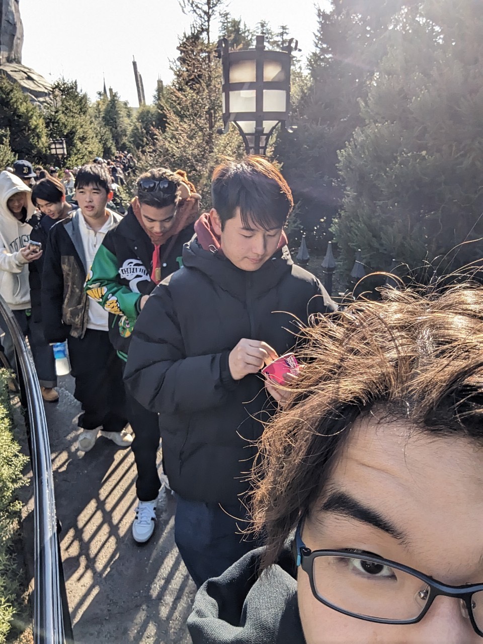 友達と寒い中アトラクション待ってます!寒い~~~!