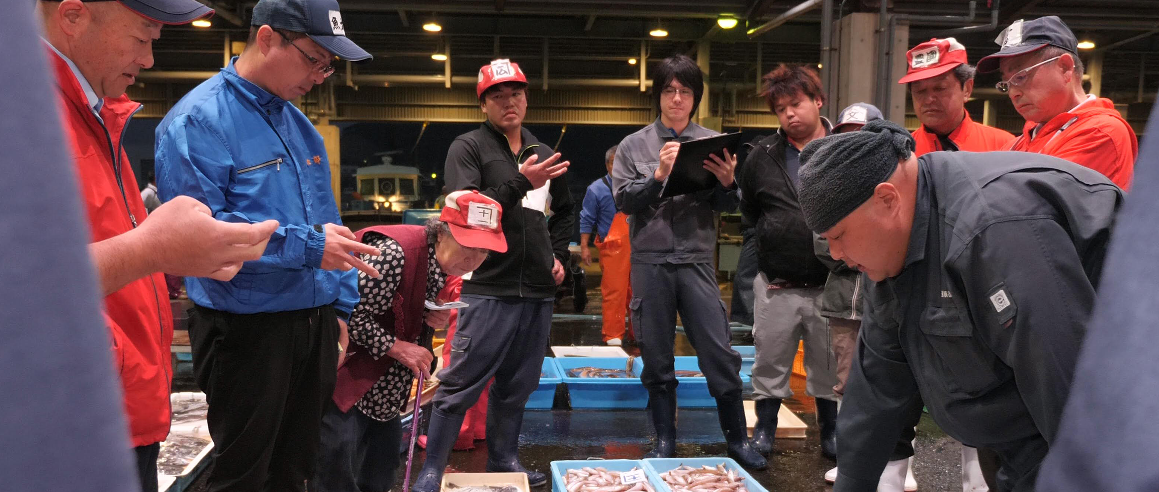 とれたて新鮮な魚貝を競り落とす。