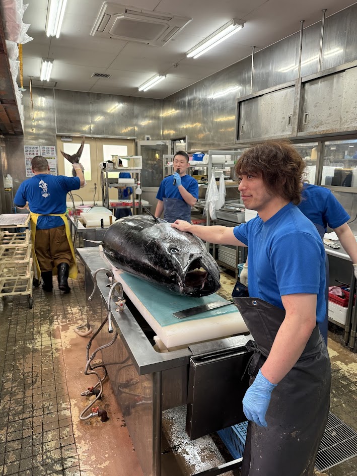 冷凍じゃない、「生」の本マグロ。 その巨体が、職人の包丁一本で解体されていく様はまさにエンターテインメント!😲